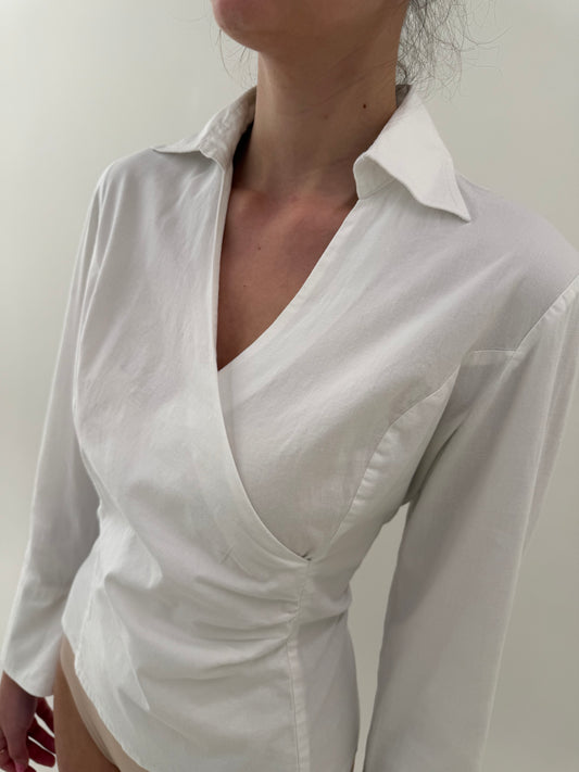Cămașa cambrata cu guler brodat din organza și manșete ultra înalte