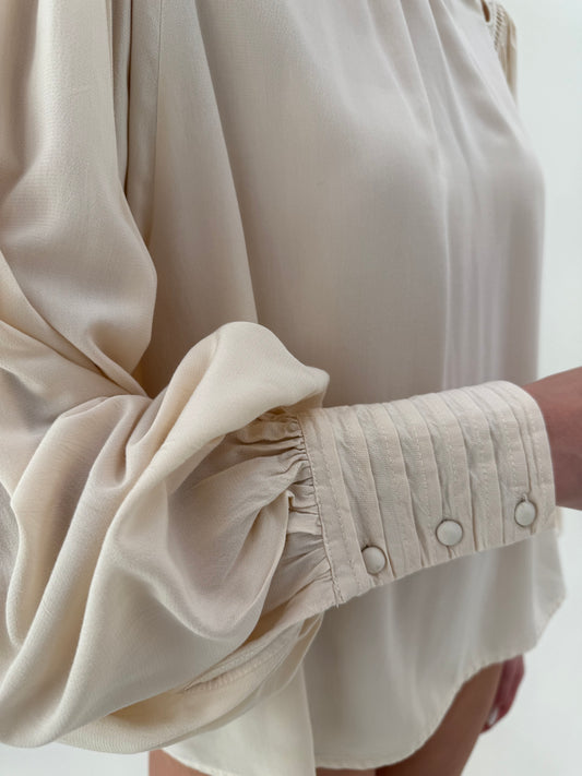Cămașa cambrata cu detalii fronsate butter nude cu spate reglabil