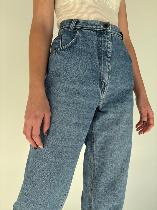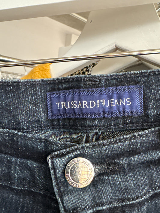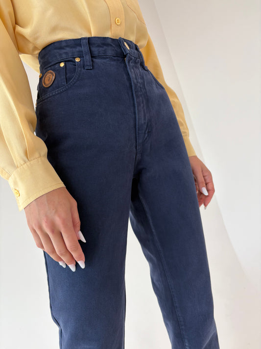 Jeans vintage luxury Trussardi dark wash in croi mom fit cu talie ultra înaltă