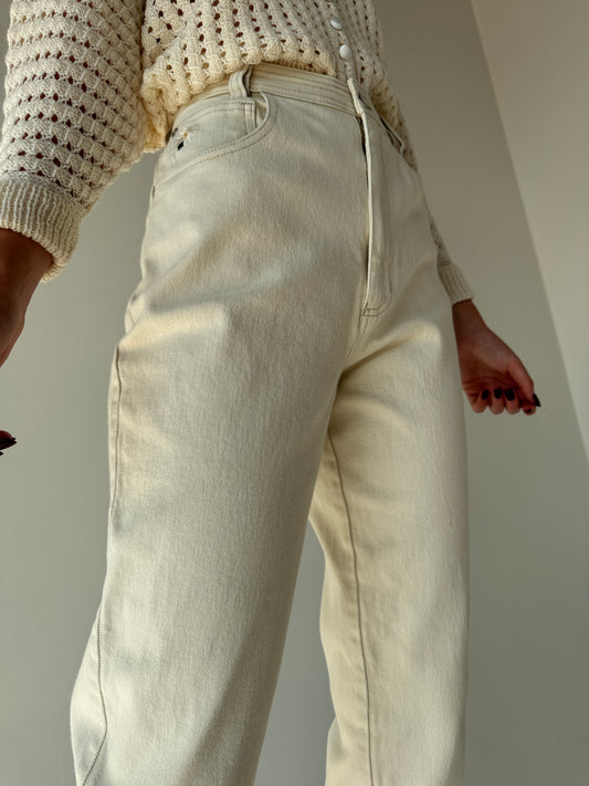 Jeans vintage moale de vară modelator light beige cu talie înaltă