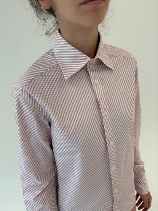 Cămașa luxury italiană cu dungi dark red din poplin gros excepțional