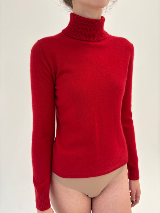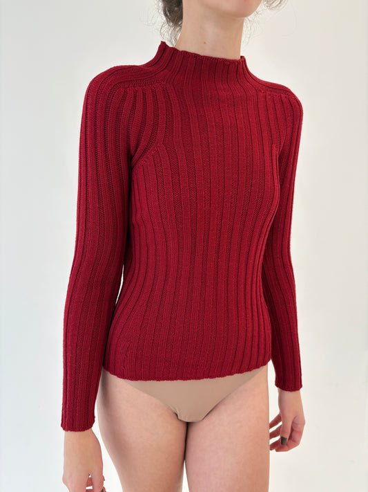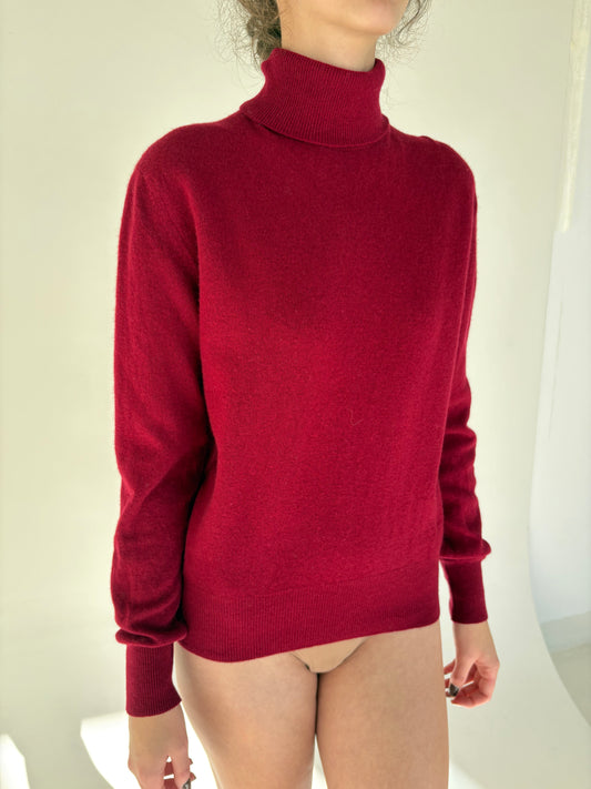 Maleta cherry red din lana extrafina cu mânecă ușor căzută