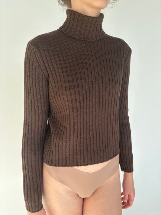 Maleta chocolate brown din lana merino extrafina de gramaj mare ribbed