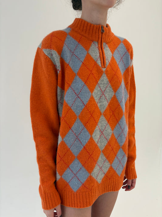 Maleta cu influențe sport și romburi de gramaj mare 80% lana extrafina