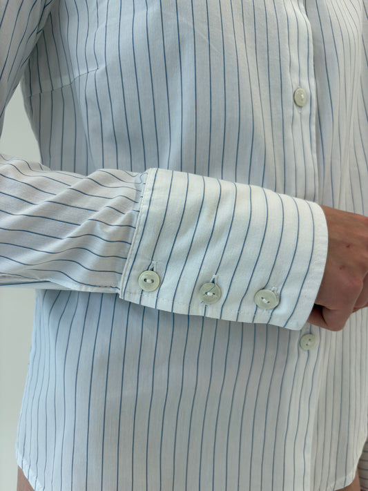Cămașa premium baby blue cu dungi verticale din poplin plin de bumbac