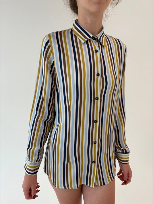 Cămașa premium baby blue cu dungi fine colorate verticale
