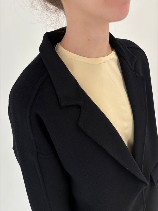 Palton negru din stofă excepțională de lana cu față dublă în croi minimalist
