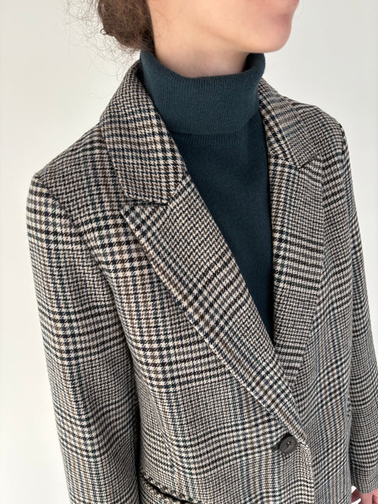 Palton în carouri și croi minimalist din mix de lana extrafina