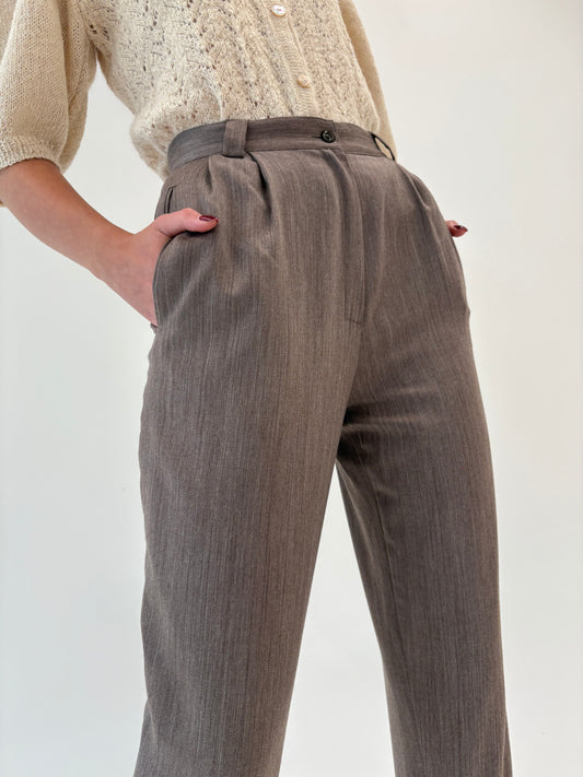 Pantaloni cafe au lait cu talie ultra înaltă mom fit din lana extrafina