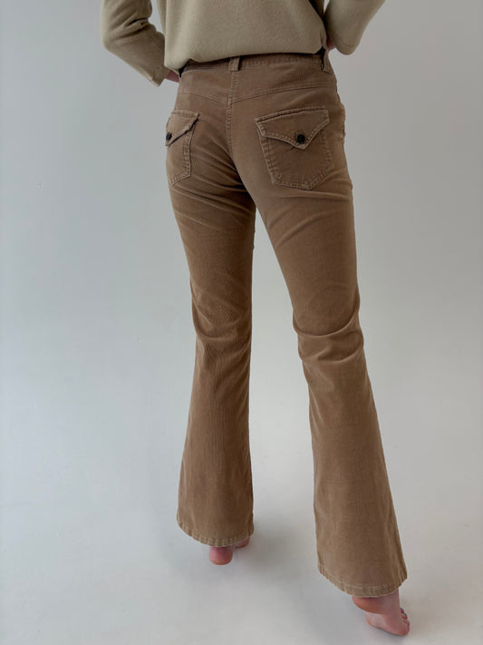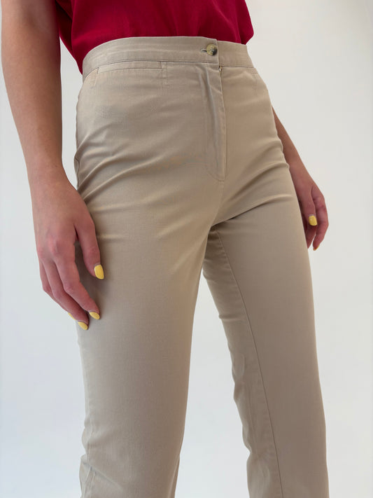 Pantaloni camel Escada modelatori foarte ușor satinați