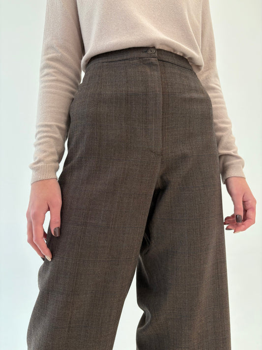 Pantaloni chocolate brown din lana extrafina cu talie înaltă