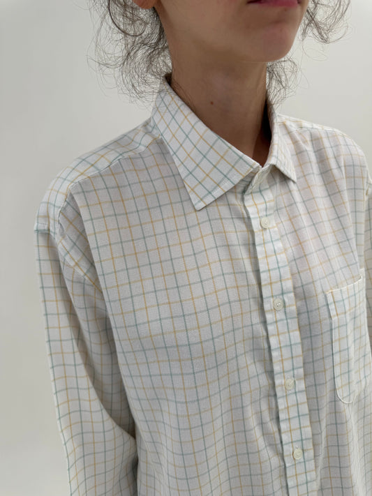 Oversized/ XL/XXLCămașa high end din bumbac gros Oxford weave în carouri fine