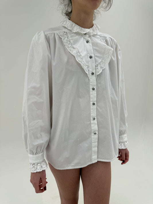 Cămașa vintage cu umeri bufanți si guler supradimensionat brodat