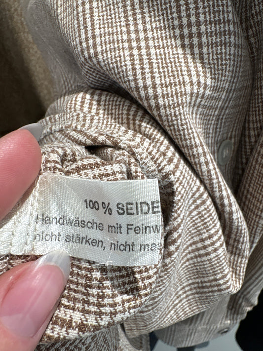 Cămașa vintage din tafta de mătase naturală cu inserții de dantelă macrame