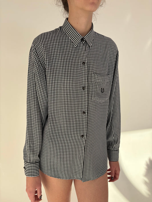 Cămașa premium vinatge în carouri alb negru din poplin texturat