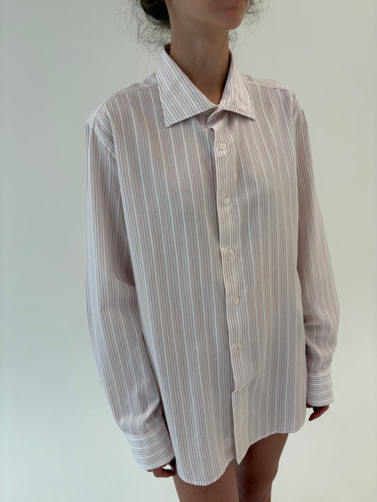 Oversized/ XL/XXLCămașa din poplin gros texturat cu dungi oxblood verticale fine