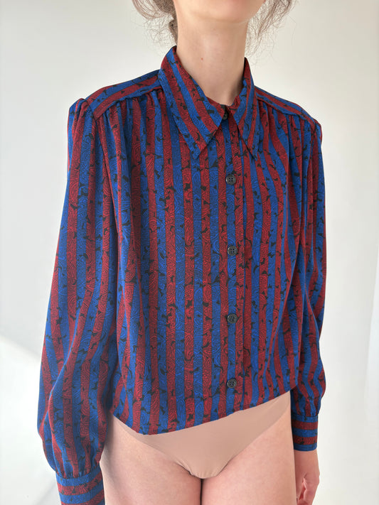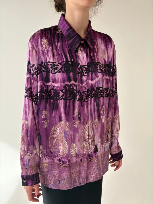 Cămașa vintage din mătase naturală texturată cu print baroc