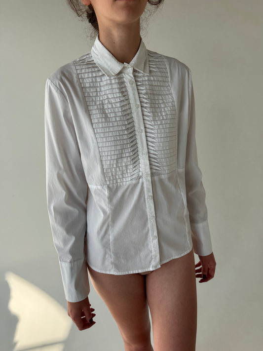 Cămașa din poplin premium ușor strech cu pliseuri decorative