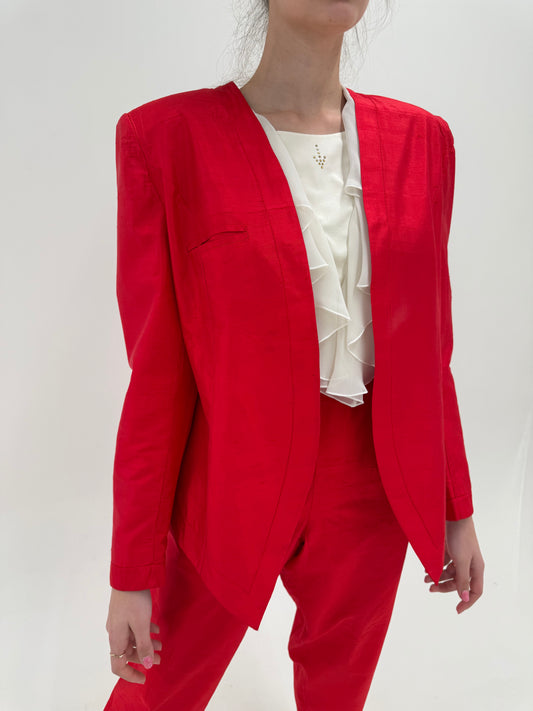 Deux piece no iron din mătase naturală dupioni Ferrari red