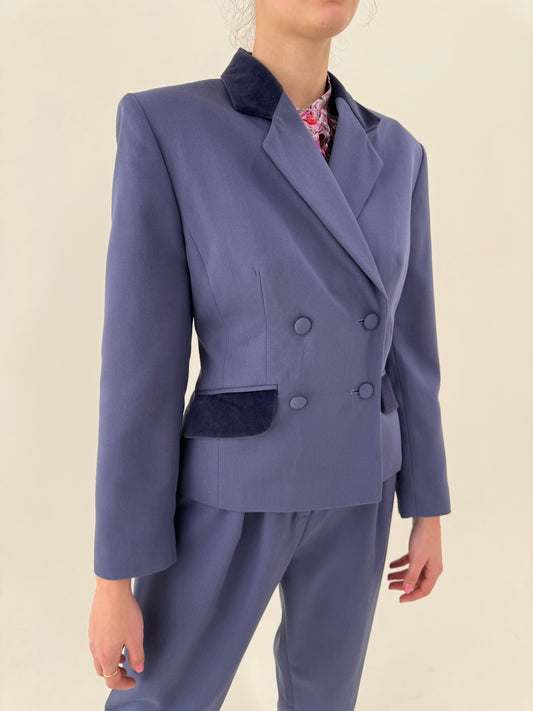 Costum de primăvară dusty lavender în croi statement cu sacou super cambrat