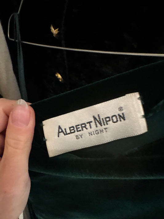 Rochie Old vintage couture de designer sfârșit de ani 70 din catifea de mătase naturală