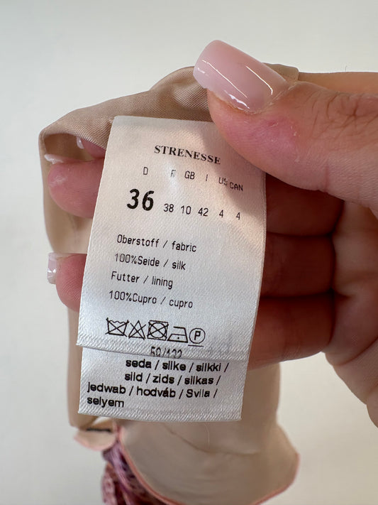 Rochie din mătase naturală în croi clasic camel și nuanțe de lavandă