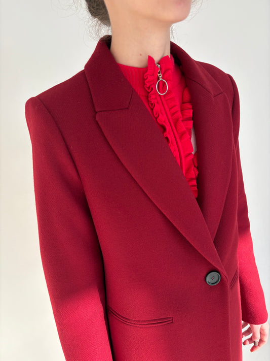 Palton cherry red cu închidere tip smoking din stofă de Lana extrafina