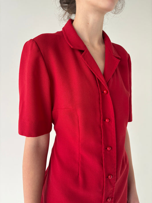 Oversized / M/LRochie vintage chemise cherry red din lana plină extrafina