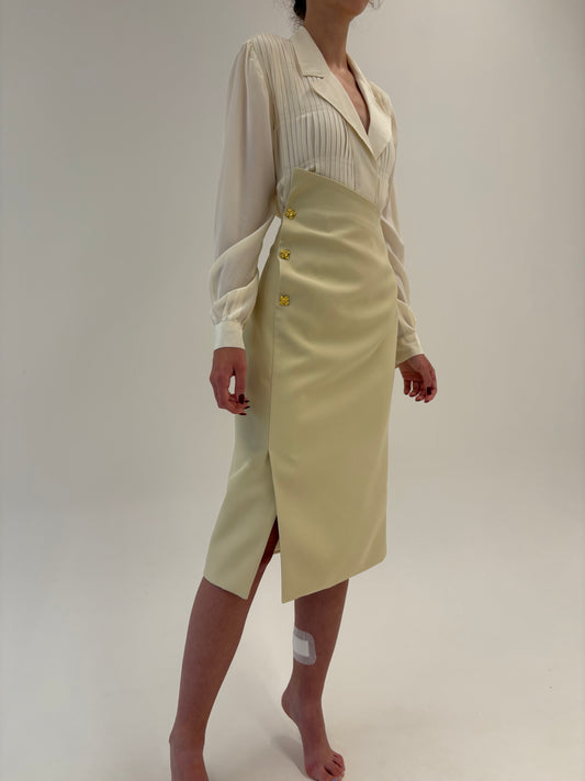 Fustă vintage ivoire mermaid din mătase naturală dupioni