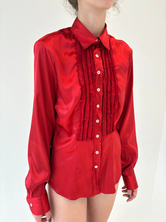 Cămașa roșu clasic satinata cu mini volanase de la zi la seară