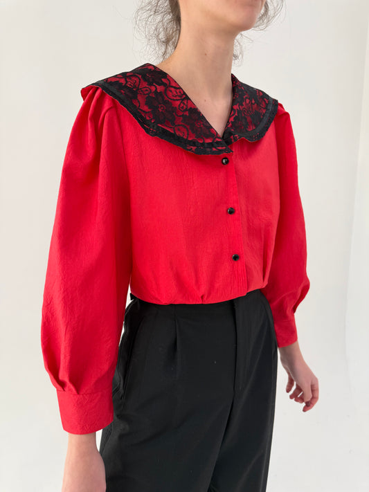 Cămașa vintage cambrata cu guler amplu dantelat