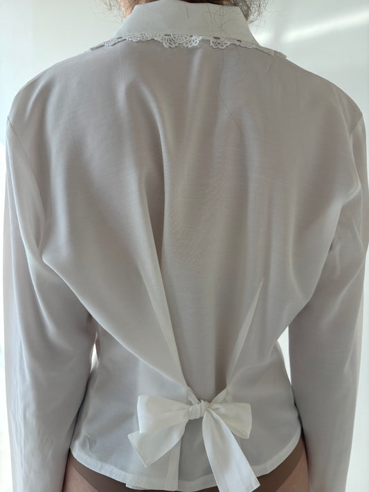 Cămașa vintage cambrata cu talie ușor reglabilă la spate și dantelă macrame
