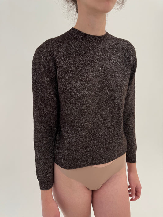 Pulover vintage prețios chocolate brown din lana extrafina cu lurex fin