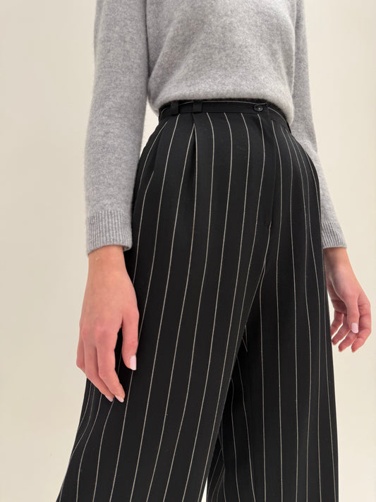 Pantaloni high end spre palazzo din lana extrafina ușor lucioasă și talie ultra înaltă