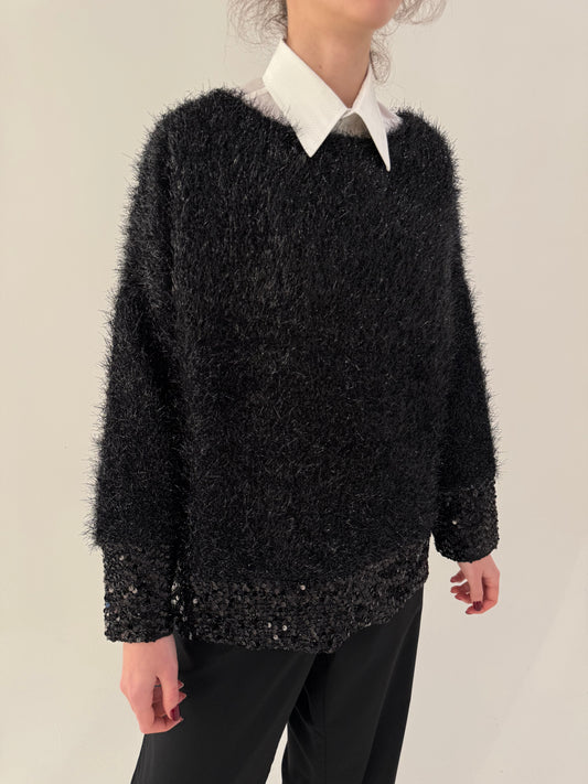 Oversized/ XLPulover prețios din lurex în croi lejer