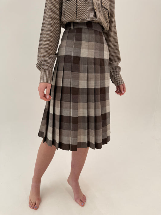 Fustă plisată din lana plină extrafina în combinație superbă de culori neutre