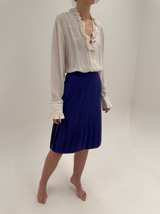 Fustă vintage plisată indigo cu talie ultra înaltă din lana extrafina