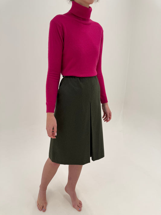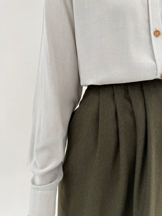 Fustă vintage kaki extrem de amplă din lana extrafina plină cu pense adânci