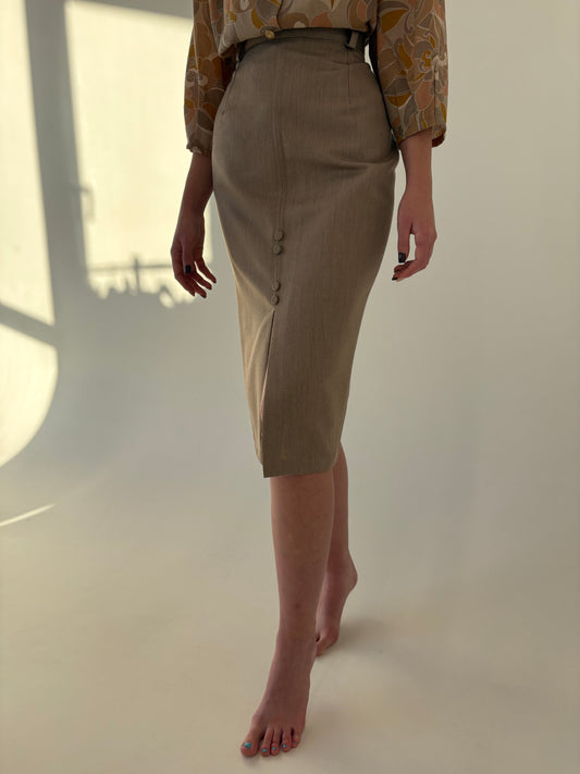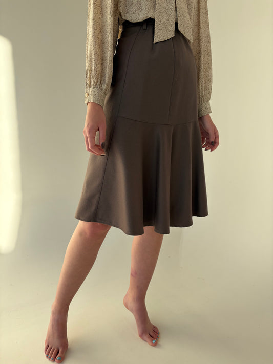Fustă mermaid taupe din lana extrafina cu talie ultra înaltă