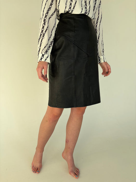 Fustă din piele naturală cu buzunare și talie ultra înaltă