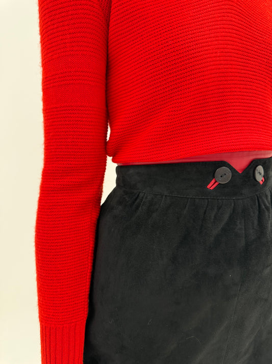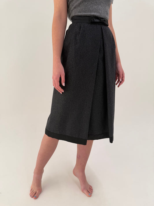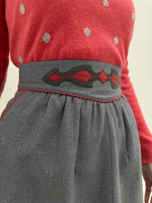 Fustă vintage din lana plină cu inserții și fundiță satinate