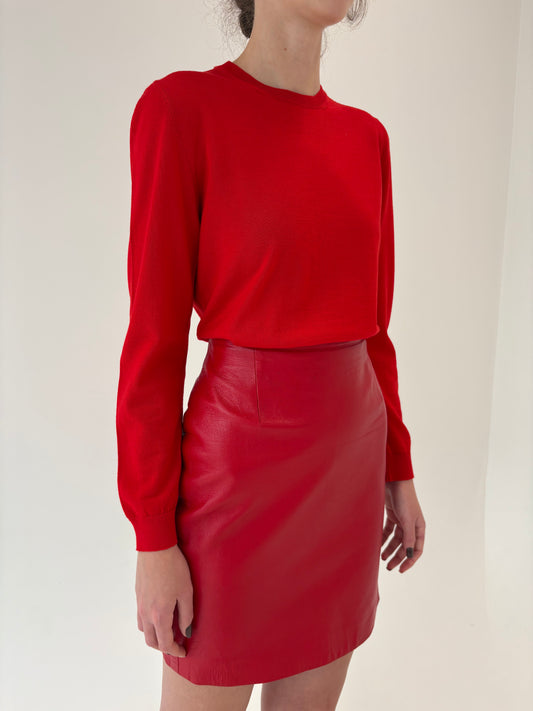 Fustă din piele naturală moale cu talie ultra înaltă marcată
