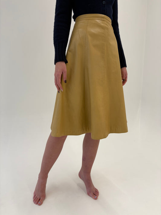 Fustă camel din piele naturală extrem de moale cu talie ultra înaltă marcată