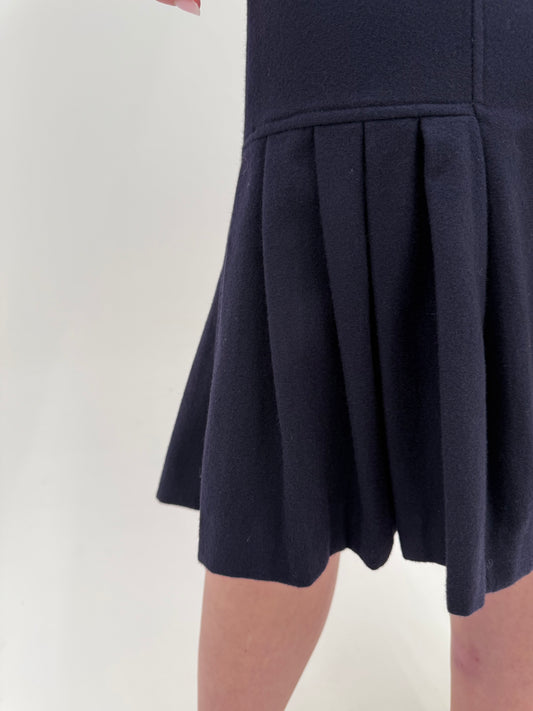 Fustă midi vintage plisată Navy blue din lana extrafina