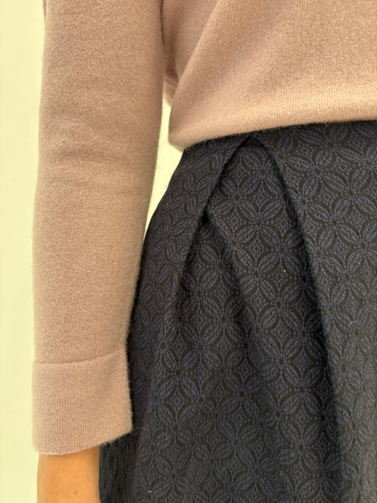 Fustă de la zi la seară din brocart de lana extrafina Navy cu negru