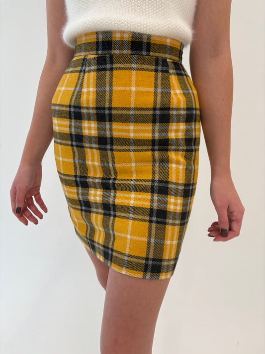 Fustă italiană din lana din Tartan în culori tari cu talie ultra înaltă