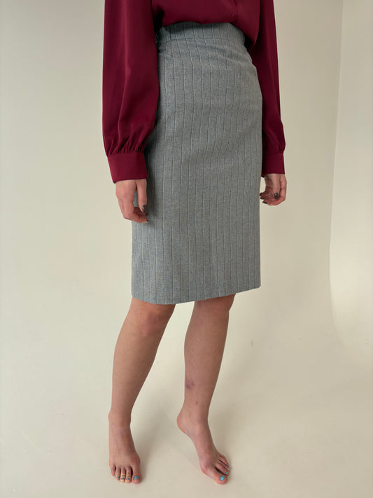 Fustă silver gray din lana extrafina cu talie ultra înaltă elastică marcată