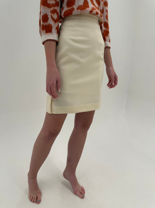 Fustă ivoire cu talie ultra înaltă marcată din lana extrafina