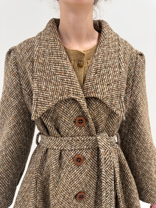 Princess coat old vintage de colecție late 60’s din tweed gros de lana cu cordon