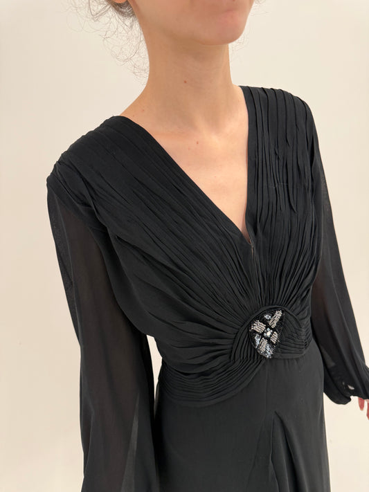 LBD maxi Old vintage anii 40 de colecție din heavy silk georgette cu influențe Art Deco